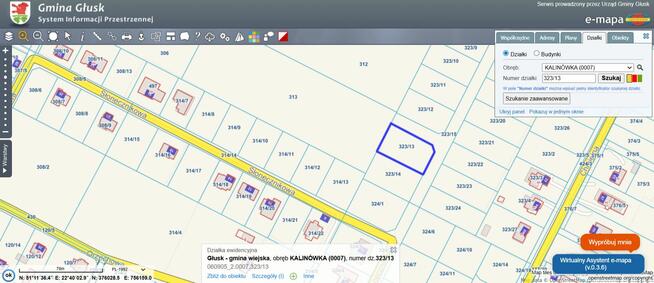 Działki budowlane Kalinówka 323/13 i 323/14 Wymiary działki 323/13 szer 27,5 m x 44,5 m Wymiary działki 323/14 szer ...